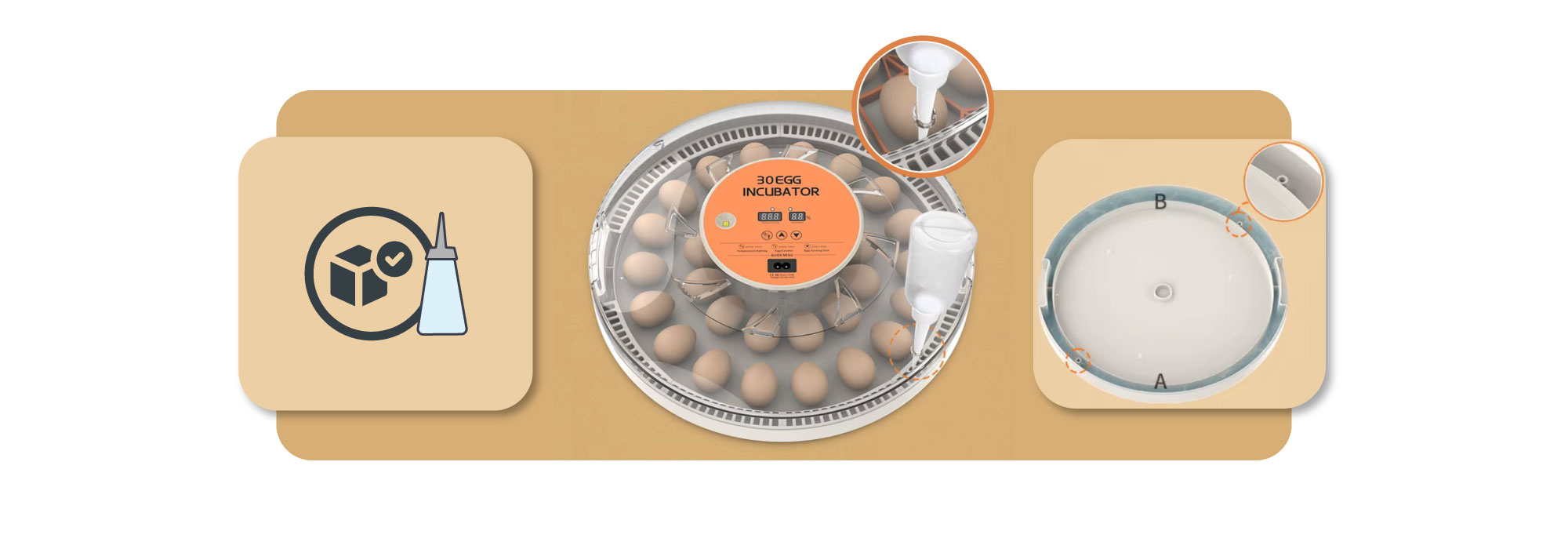 Jako dárek od nás navíc získáte praktickou lahvičku na doplňování vody, díky které můžete udržovat optimální vlhkost bez nutnosti otevírání víka – tím zamezíte kolísání teploty i ztrátám vlhkosti během líhnutí. Vlhkost a teplotu lze přehledně sledovat na digitálním displeji.