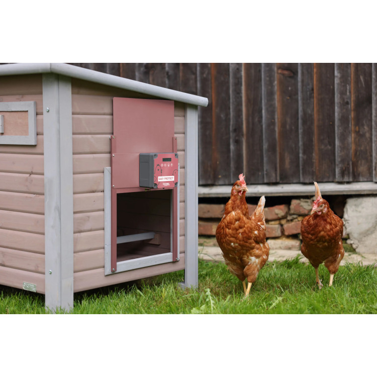 Integrovaná samočinná západka brání nežádoucímu otevření zvenčí a pomáhá chránit kurník před predátory.