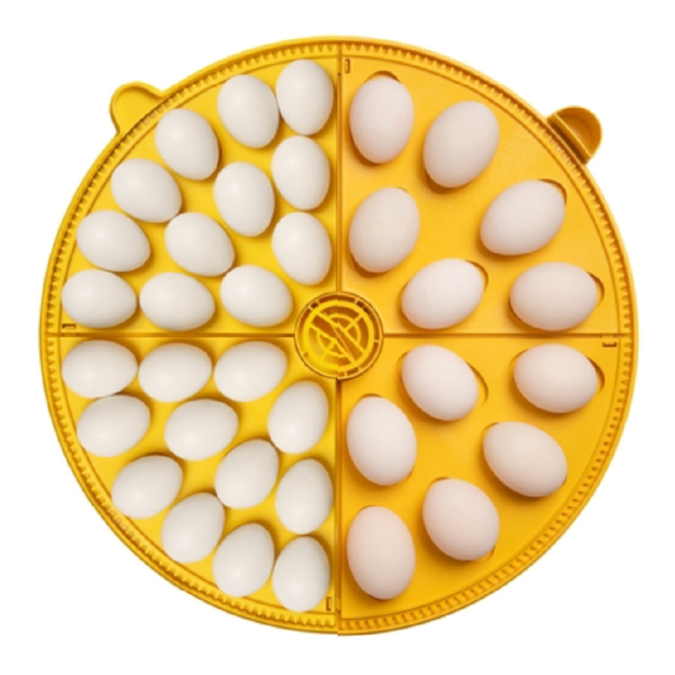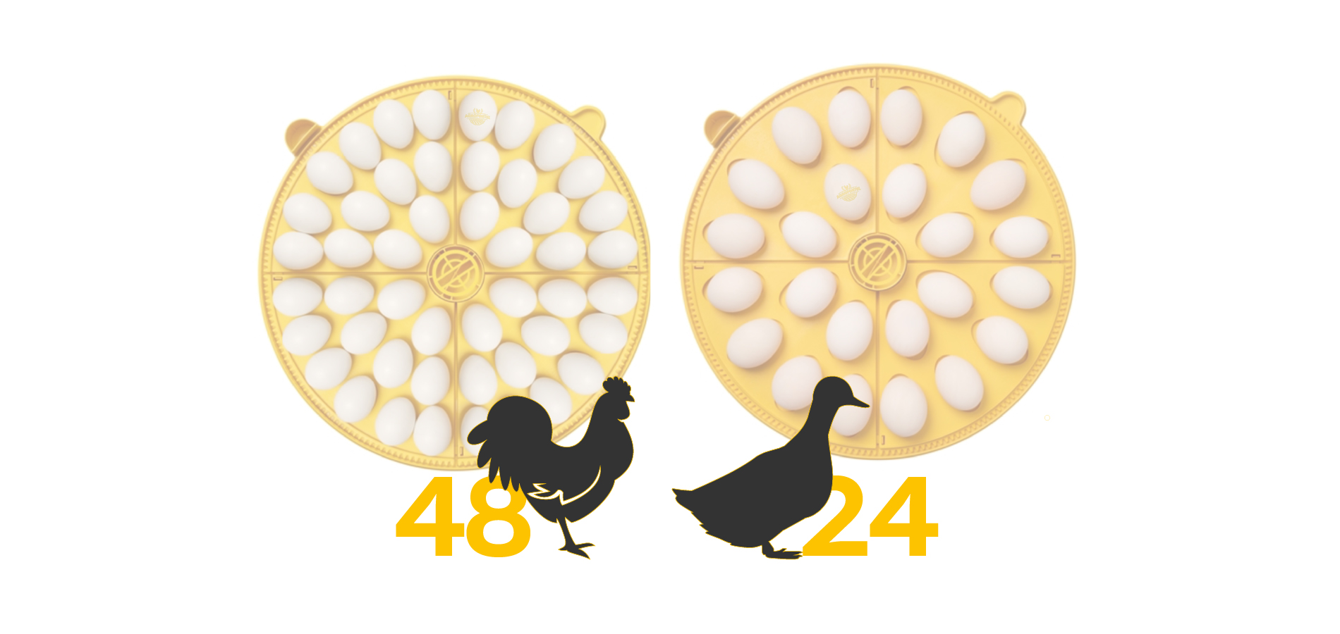 Velkou předností této líhně je systém čtyř kvadrantů, které lze kombinovat podle aktuální potřeby. Uvnitř tak můžete připravit prostor pro standardní, větší i menší vejce a lépe přizpůsobit kapacitu konkrétnímu chovu. To je praktické jak pro běžná drůbeží vejce, tak pro vzácnější plemena nebo menší druhy ptactva. K líhni jsou standardně dodávány kvadrantové držáky na slepičí a kachní vejce.