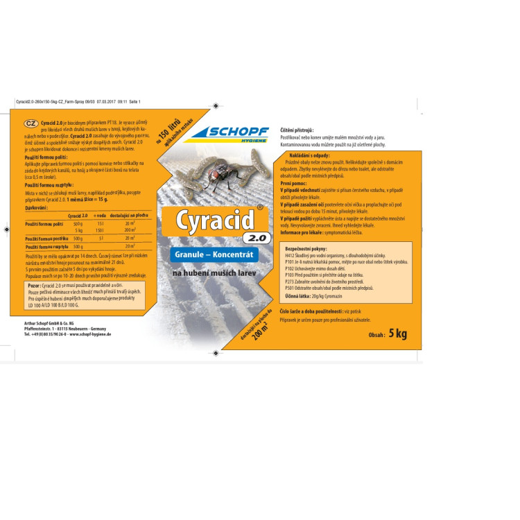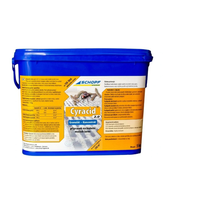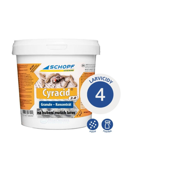 - pro hubení muších larev ve chlévech, v podestýlkách doporučujeme speciální insekticid (larvicid) Cyracid 2.0.