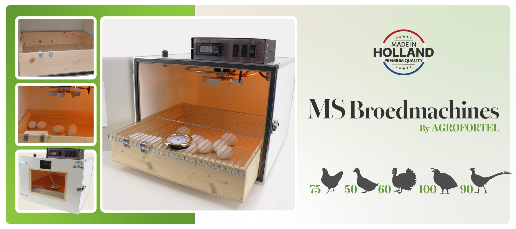 AGROFORTEL vám nyní ve výhradní distribuci společnosti MS Broedmachines přináší MS80U - dolíheň, která je určená pro poslední 3 dny líhnutí. Je navržena speciálně pro vylíhnutí kuřat a dalších drůbežích mláďat, kdy je důležité udržet stabilní prostředí. O rovnoměrnou distribuci tepla se stará tichý ventilátor, teplota se reguluje automaticky a nastavuje digitálně, vlhkost lze sledovat na integrovaném digitálním vlhkoměru. MS Broedmachines je nizozemská značka, která je proslulá ruční výrobou dřevěných skříňových líhní pro chovatele, kteří si potrpí na dlouhými lety ověřenou kvalitu.