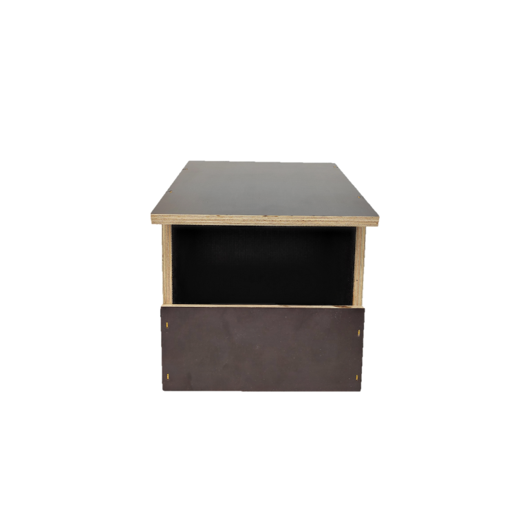 Tento model ptačí budky je vyroben z voděodolné březové překližky té nejlepší kvality o tloušťce 9 mm a pokryty fenylovým filmem. Lze jej instalovat na fasády budov, na místa vystavená dešti.