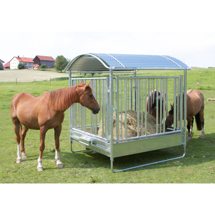 Při krmení balíky se často část krmiva ušlape nebo znečistí. Tohle hranaté příkrmiště pro skot a koně je konstruované tak, aby ztráta krmiva byla velmi nízká. V praxi to znamená čistší krmné místo a menší plýtvání zejména při zimním přikrmování nebo při krmení na pastvě.