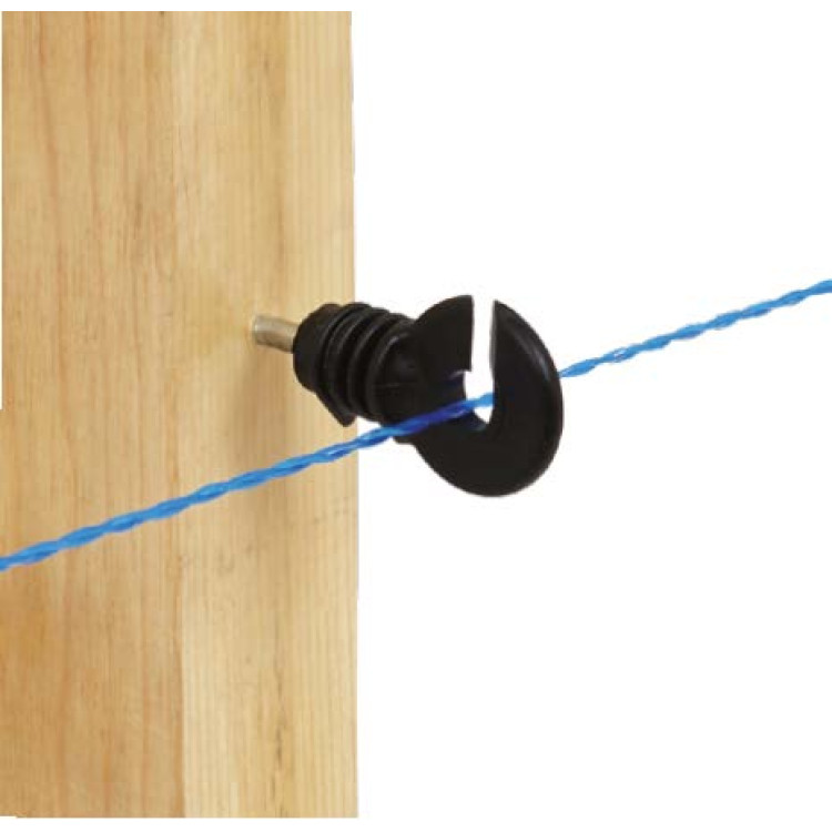 Díky integrovanému vrutu lze izolátor jednoduše zašroubovat přímo do dřevěného kůlu bez nutnosti speciálního nářadí. To výrazně urychluje montáž ohradníku a šetří čas při instalaci i údržbě.