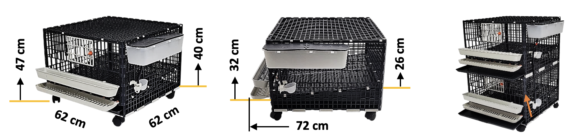 Klec je z odolného antracitového plastu, který se snadno čistí a při kontaktu s trusem nekoroduje.