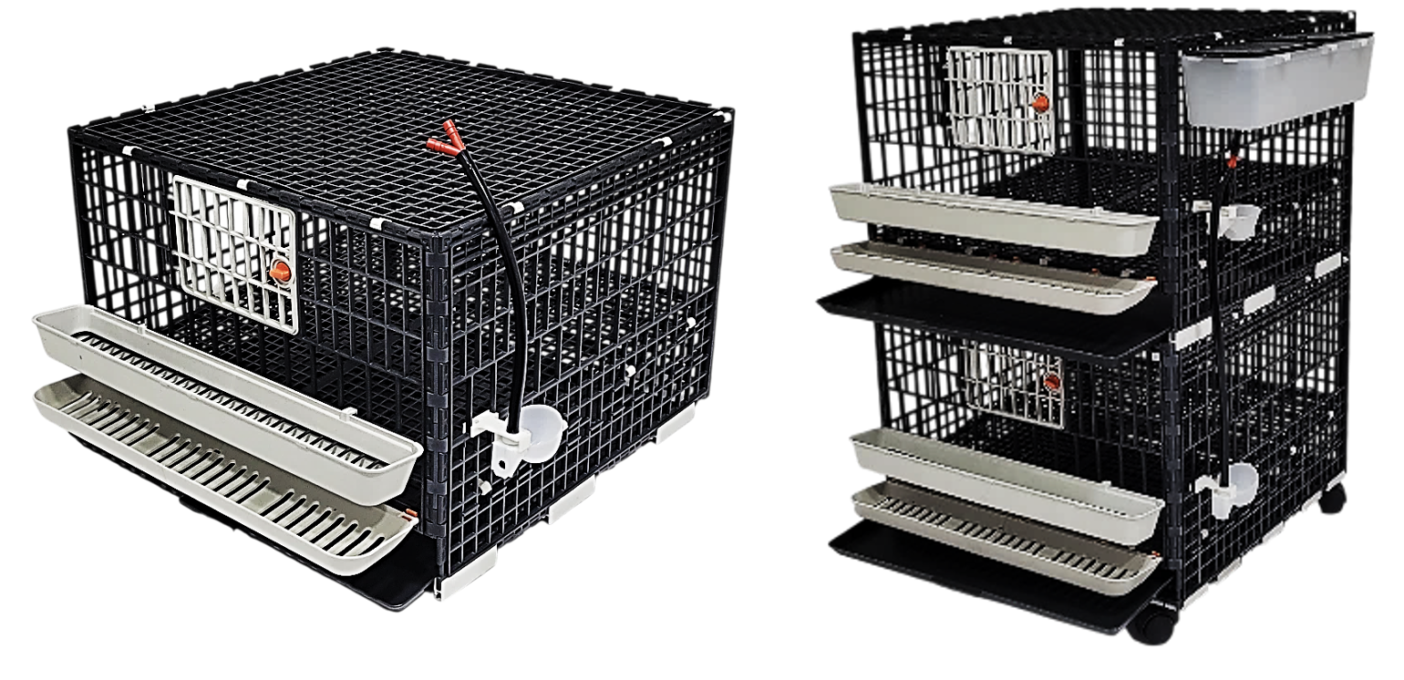 Možnost stohování při zakoupení základního modulu (kód 01556) a rozšiřujícího modulu 01557 - Rozšiřující modul pro klece pro křepelky LEGANEST.