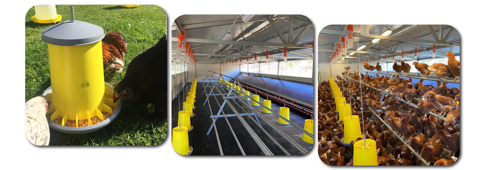 - Méně rozházeného krmiva, více úspor: Speciální protirozhozové klapky brání slepicím vyhrabávat krmivo zobákem ven. Krmivo zůstává tam, kde má – v misce, ne v podestýlce.