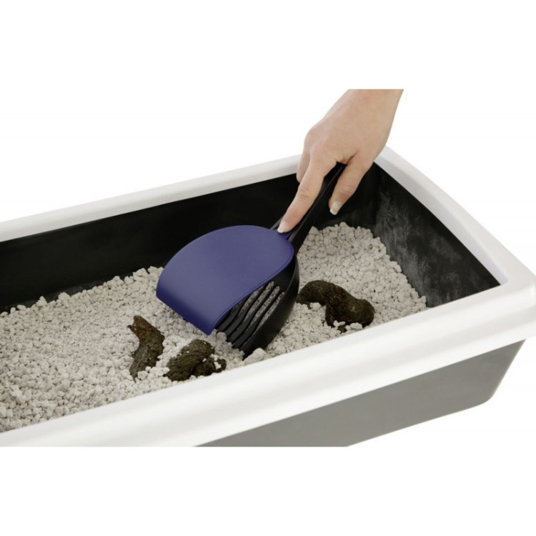 Praktická plastová lopatka na kočičí trus se sítkem a víkem pro pohodlné odstranění exkrementů z podestýlky. Díky víku se podestýlka lépe protřepe a jednoduše se oddělí trus od steliva. Podestýlka díky mřížce v lopace propadne zpět do kočičí toalety a zůstane na ní pouze kočičí trus. Podestýlka proto vydrží déle.