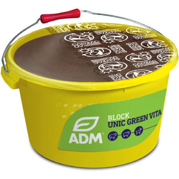 BLOCK UNIC GREEN VITA poskytuje praktické řešení pro doplnění minerálů u všech přežvýkavců. Splňuje požadavky zvířat na pastvě i ve stáji.