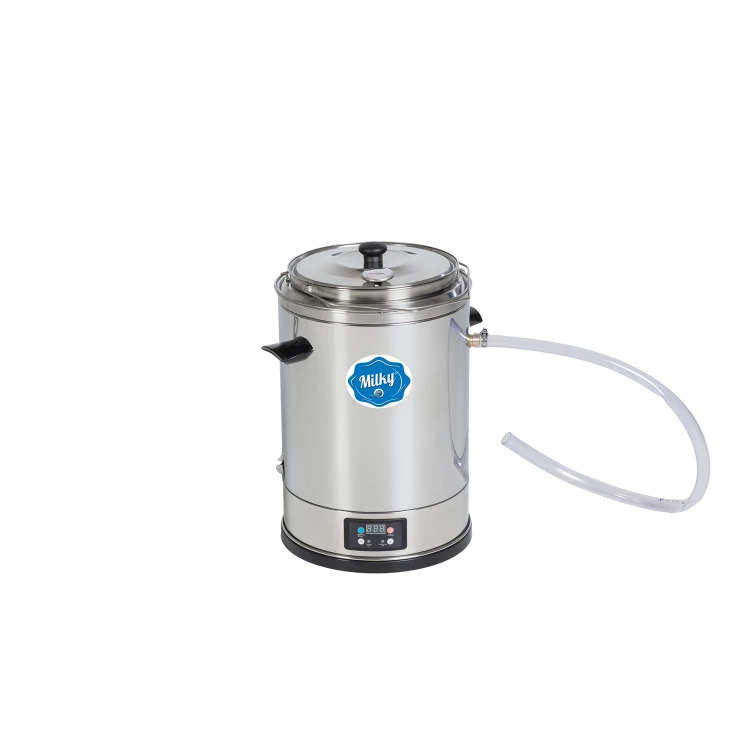Tento jednoduchý dvouplášťový mini pasterizér o objemu 15 litrů je perfektním doplňkem pro každou domácnost. Je to univerzální kotel, který nalezne uplatnění nejen při pasterizaci, ale také při výrobě sýrů a jogurtů. Díky topnému tělesu o výkonu 2,8 kW dokáže rychle zahřát médium od výchozí teploty 4°C na maximální teplotu 82°C, a to za přibližně jednu hodinu. Mini pasterizér pracuje na napětí 230V a navíc je vybaven resetovacím tlačítkem, které umožňuje snadné restartování zařízení v případě potřeby.