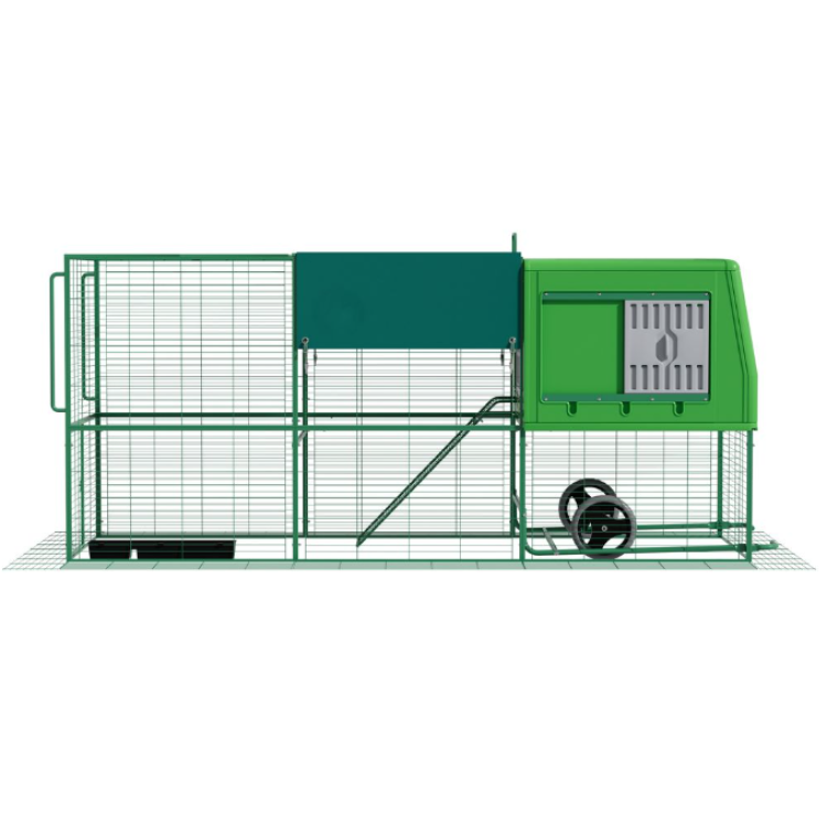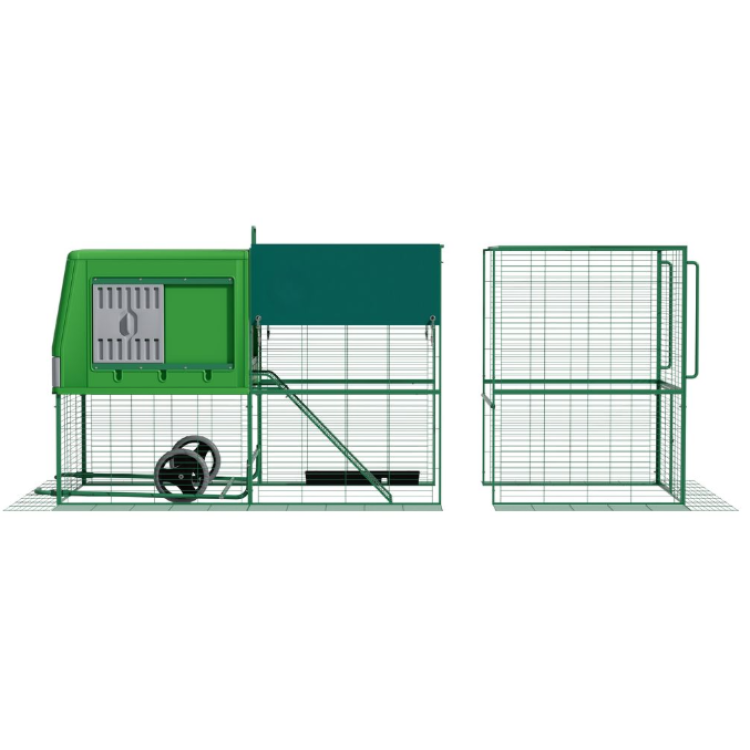 Model THE EGG PALACE kombinuje uzavřenou část pro nocování a snášku s navazujícím větším výběhem. Slepice tak mají bezpečné útočiště i prostor pro denní aktivitu.