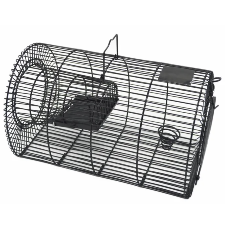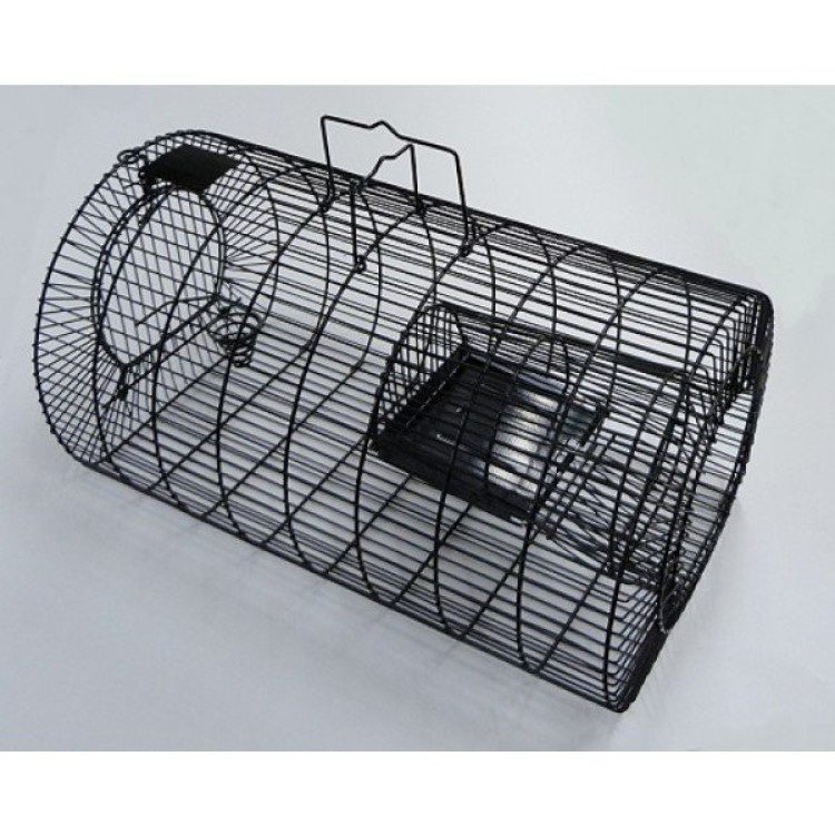 Návnada je umístěna ve středu klece a není dostupná zvenčí, což zvyšuje účinnost odchytu. Praktická rukojeť umožňuje bezpečné přenášení a zadní výklopná dvířka usnadňují rychlé a hygienické vyprázdnění klece.