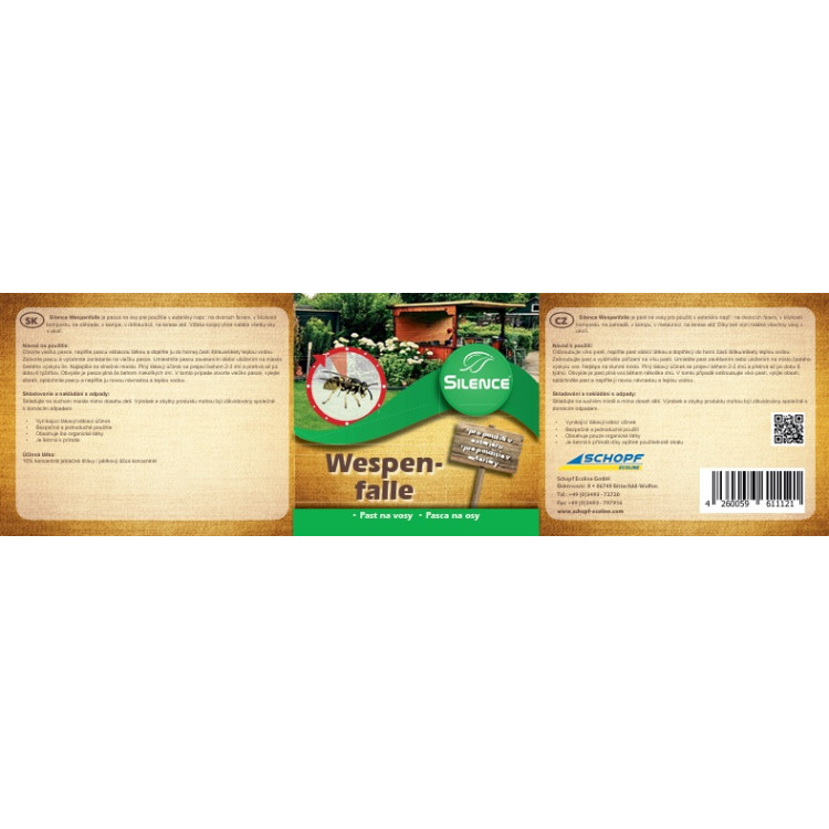 Kvalitní Past na vosy do exteriéru. Pro odchyt vos až po dobu 3 týdnů.  Vhodná pro venkovním prostředí (zahrady, pergoly, farmy, balkóny, aj.).  Pro opakované používání. Varianta Komplet = obsahuje past a vábící složku. Varianta Náhradní náplň = obsahuje 3 ks vábící složky (pro tři použití). Pro zavěšení nebo postavení. Šetrná k životnímu prostředí, vábící složka je bez feromonů a chemie.