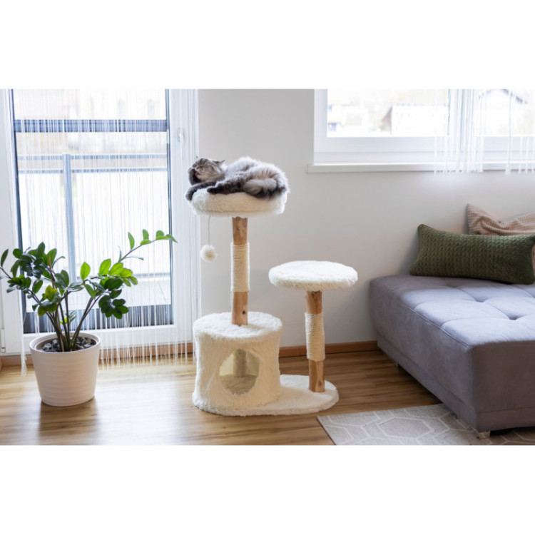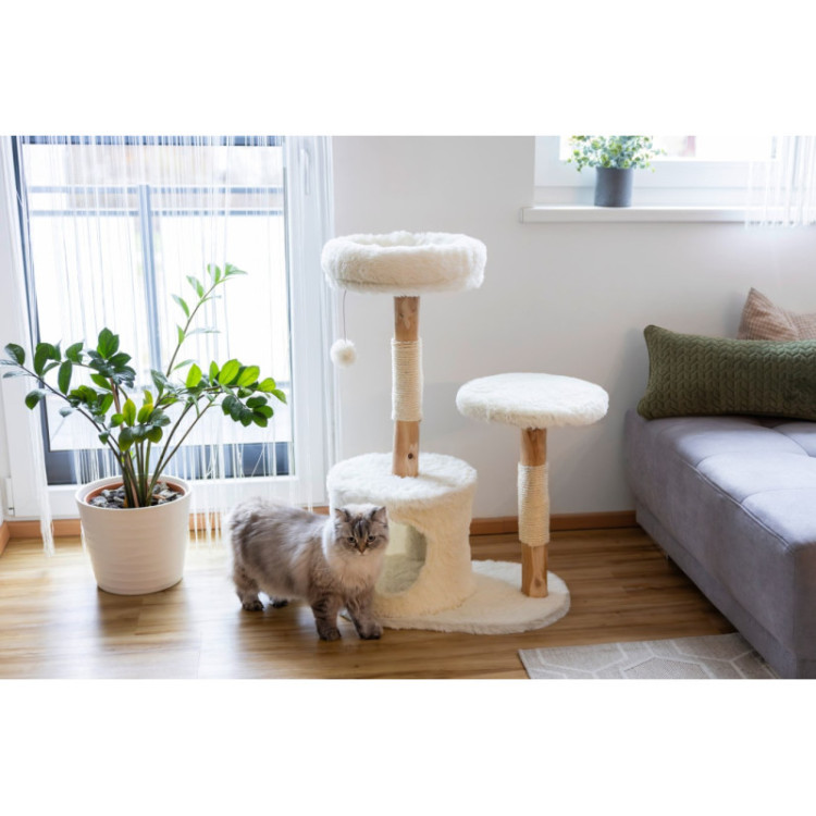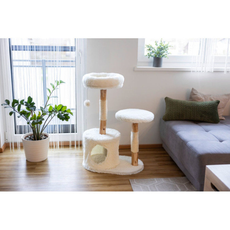 Stylový kočičí nábytek vyrobený z přírodního hruškového dřeva s kvalitním sisal lanem, které poskytuje vašim kočkám perfektní místo pro broušení drápků a odpočinek. Moderní kočičí škrabadlo se hodí do každého interiéru díky svému minimalistickému vzhledu.