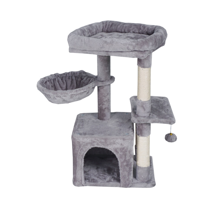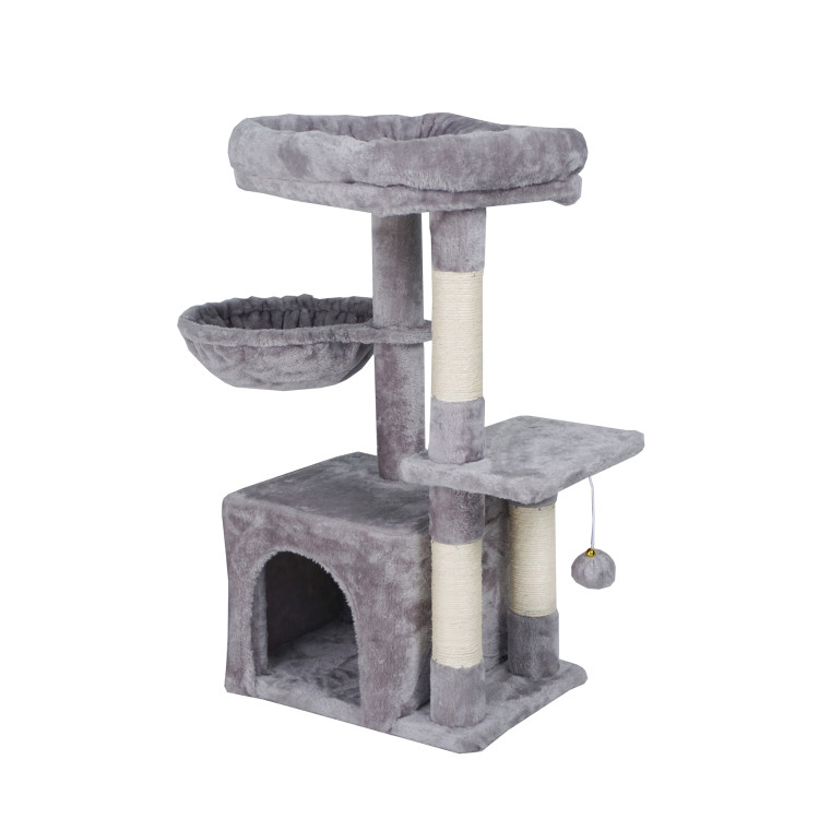 Škrábe vám Váš chlupatý mazlíček sedačku a šplhá po záclonách? S naším vymazleným škrabadlem už nebude! Dopřejte své kočičce místo, kde může beztrestně pečovat o své drápky, šplhat do výšek, lenošit v plyšovém domečku, nebo si dopřávat odpolední siestu v houpací síti. Tenhle víceúrovňový kočičí strom nabízí vše, co Vaše kočka potřebuje.